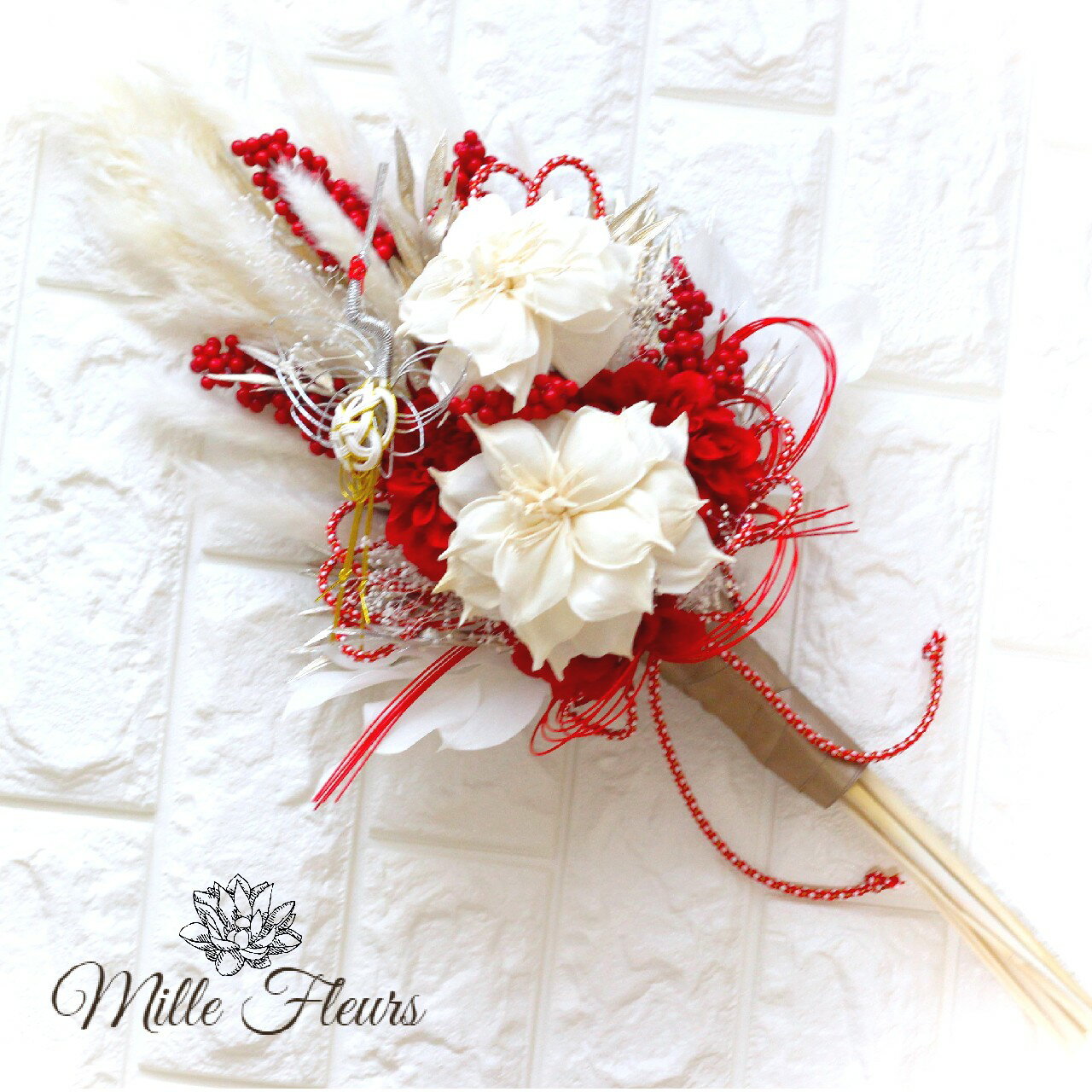 【送料無料】ドライフラワー プリザーブド アートフラワー 和ブーケ 【bouquet】 【ブライダルブーケ】【ウェディングブーケ】♡ミルフルールオリジナル♡NO.202273