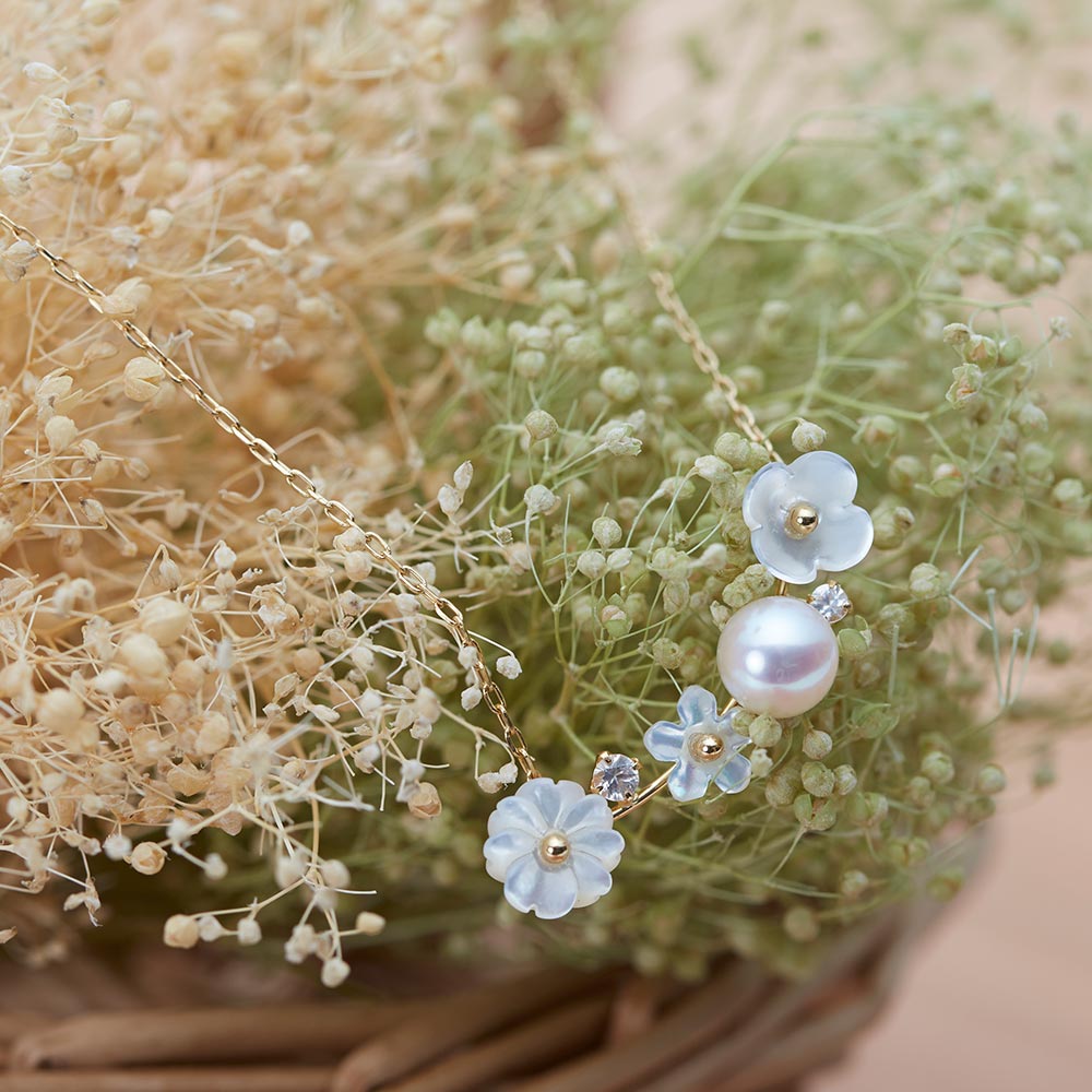 パール ネックレス 真珠 Bouquet ペンダント K18 レディース 18金 DES0402BOQ-WH00000 ムーンレーベル Moon Label
