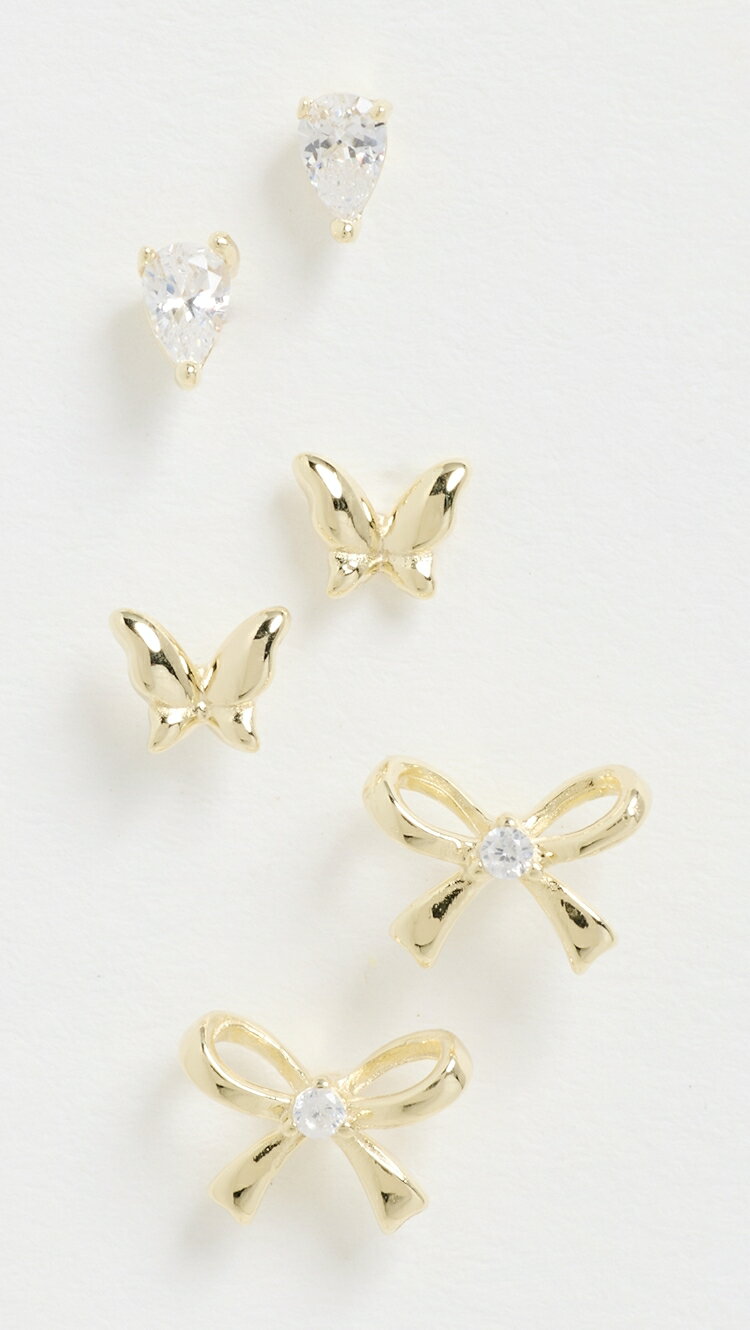 (取寄) ボウズ アンド モア スタッズ イヤリングス コンボ セット By Adina Eden Bows & More Stud Earrings Combo Set gold