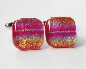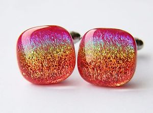 【送料無料】メンズアクセサリ— ダイクロイックガラスカフスボタンgenuine dichroic glass hand crafted cufflinks red rainbow shimmer