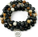 ブレスレット 男女兼用 ユニセックス 108珠一連 8mm玉 メノウ 瑪瑙 パワーストーン 合金製 蓮の花 オーム 仏の手 目の形 腕輪 ネックレス ペンダント 開運 お守り ファッションアクセサリー(x2)