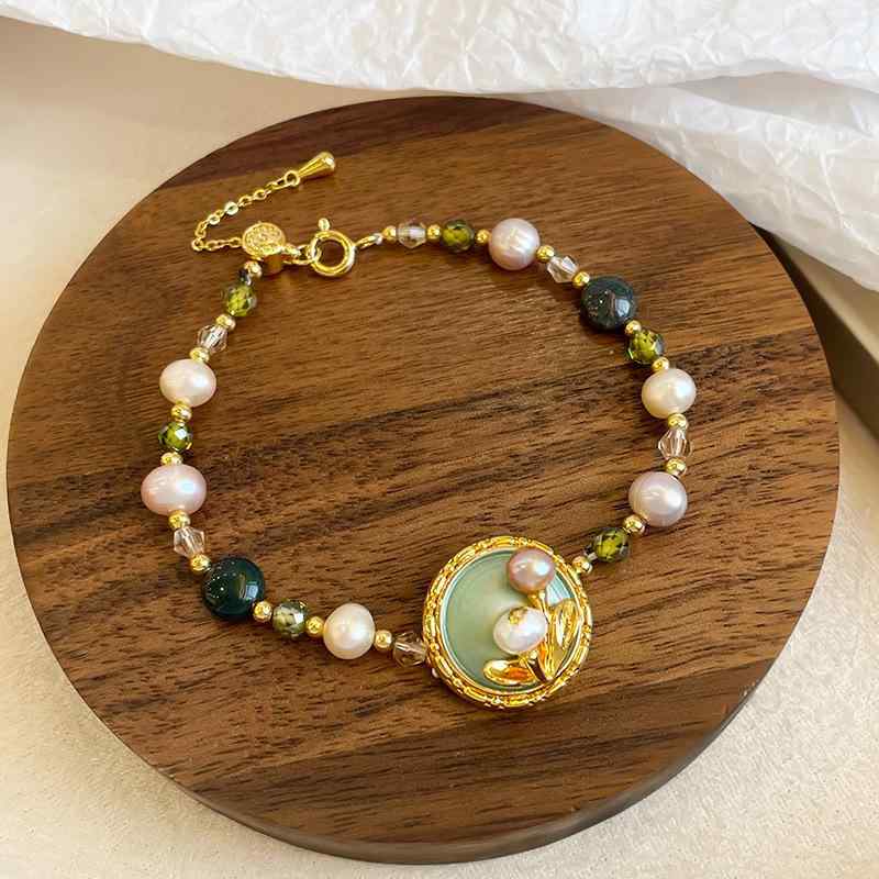 ブレスレット レディース 天然石 水晶 カラー パール 手編み チャイナ風 個性派 春夏 アクセサリー ファッション ジュエリー ハンドメイド カラフル ストーン ビーズ ウィメンズ 夏向け 軽やか 日常使い