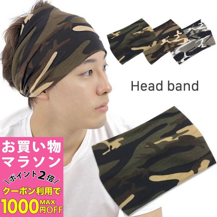 【お買い物マラソンSALE対象】【ヘアバンド】3カラー 迷彩 幅広 カモフラージュ カモフラ 迷彩柄 メンズ レディース ヘアバンド ターバン ミリタリー 化粧 お風呂上がり 防寒 白髪隠し スポーツ 洗顔 まとめ髪 ニット SP-TB20005
