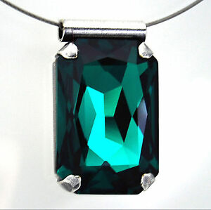 【送料無料】アクセサリー ネックレス ステンレススチールチェーンペンダントスワロフスキークリスタルエメラルドグリーンcollo maturo in acciaio inox catena ciondolo cristallo swarovski rettangolo emera
