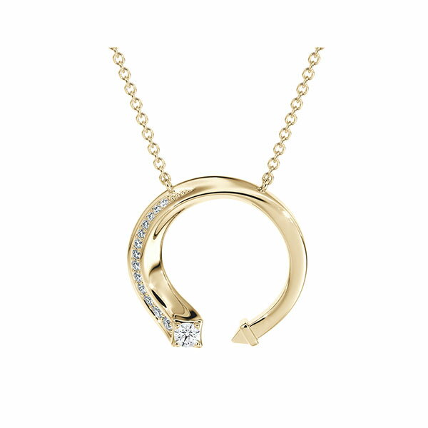 素材 18K イエローゴールド ダイヤセンターストーン0.10ct サイドストーン0.08ct サイズ トップ 縦横 約15mm ペンダントチェーン長さ:45cm フリーアジャスター付き 特徴 一筋の光のように連なるダイヤの強い存在感ある輝き。どんなスタイリングにも合う一品。 注意 画面上と実物では多少色具合が異なって見える場合もございます。ご了承ください。