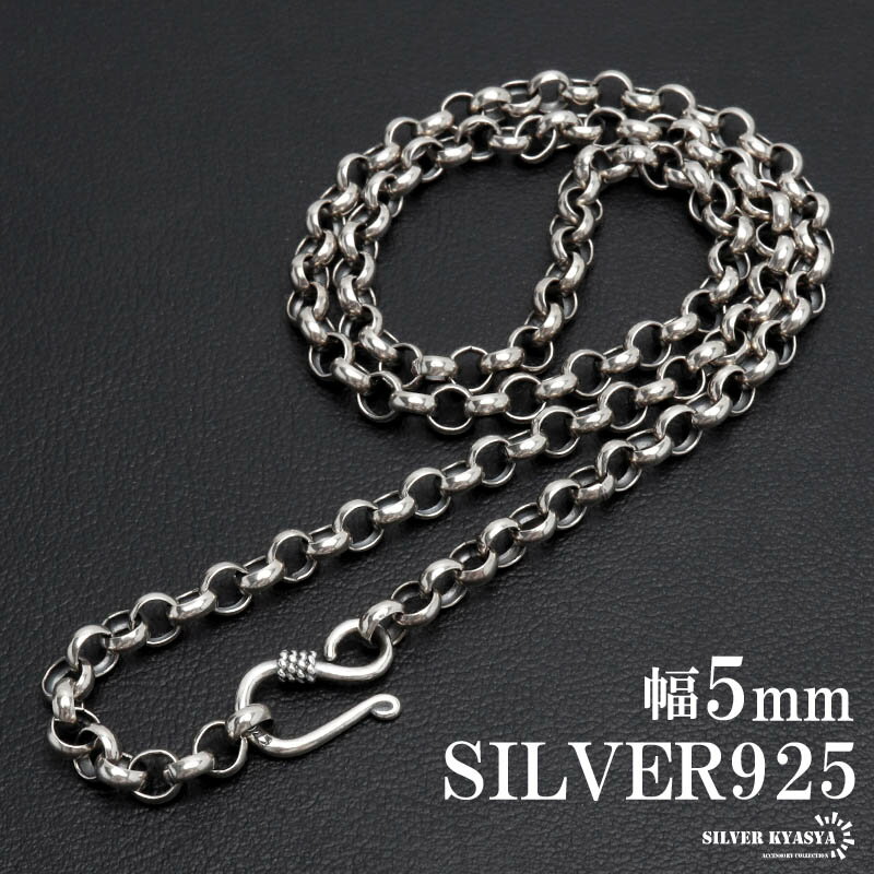 シルバー925 ロールチェーン ネックレス 幅5mm ネックレスチェーン 太め フックタイプ シルバーネックレス メンズ 男性 金属アレルギー対応 父の日