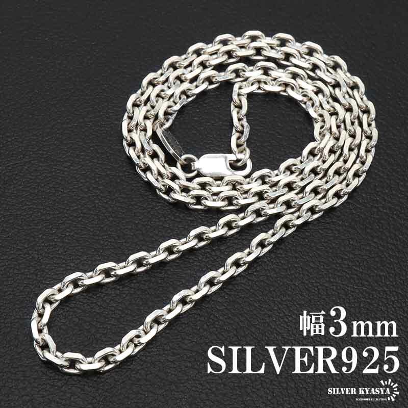 シルバー925 あずきチェーン ネックレス 幅3mm 4面カット ホワイト ネックレスチェーン 重厚 シルバーネックレス メンズ 男性 金属アレルギー対応 父の日