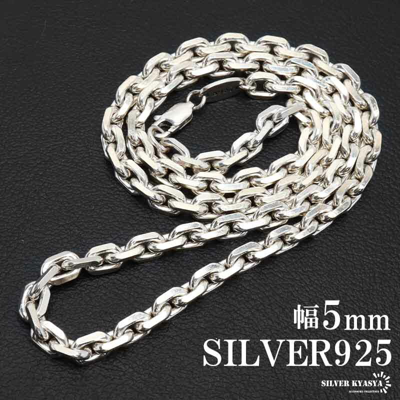 シルバー925 あずきチェーン ネックレス 幅5mm 4面カット ホワイト ネックレスチェーン 重厚 フックタイプ シルバーネックレス メンズ 男性 金属アレルギー対応 父の日