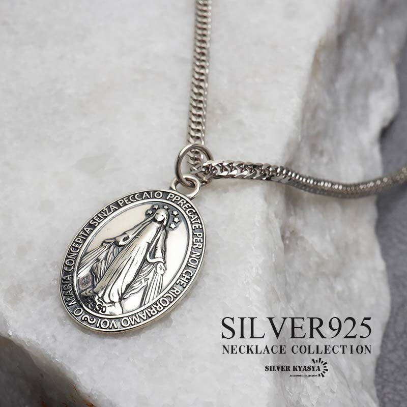シルバー925 マリア コインネックレス シルバー 細身 6面カット ダブル喜平 ネックレス 不思議のメダイ 金属アレルギー対応