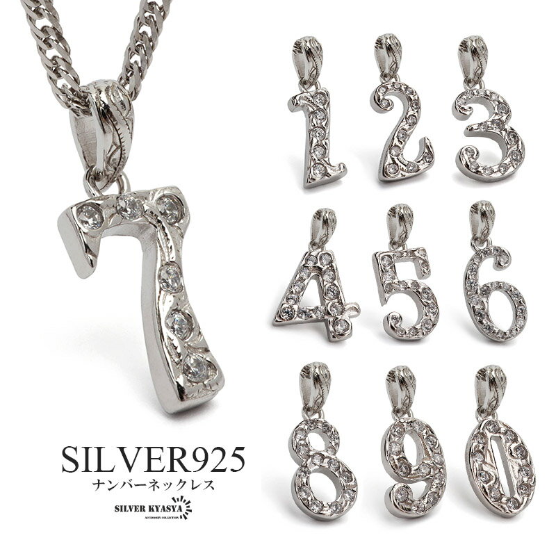 ナンバーネックレス ハワイアンネックレス シルバー シルバー925 ジルコニア 数字ネックレス 細身 6面カット ダブル喜平 ネックレス 金属アレルギー対応