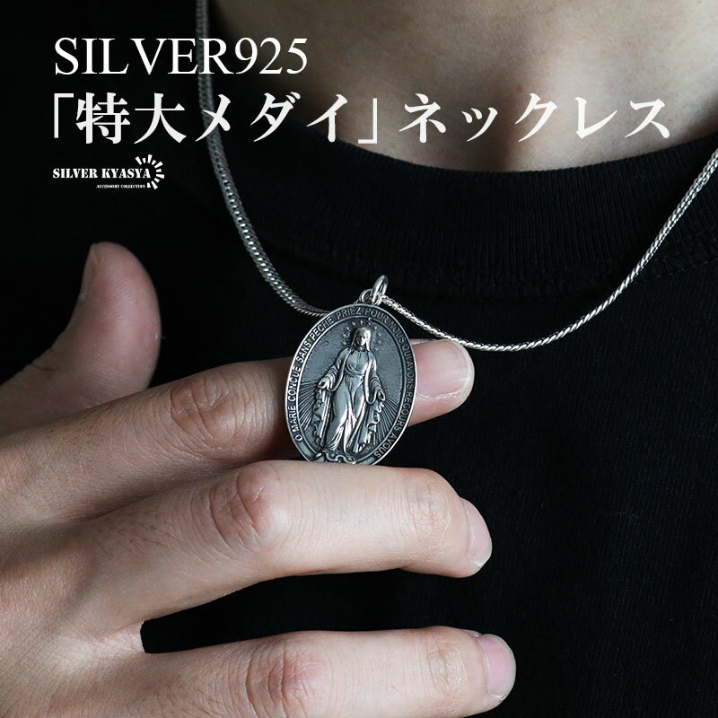詳細 商品概要 ■ITEM DETAIL 繊細に描かれたマリアコインと細めのダブル喜平チェーンをセットしたネックレス。不思議なメダイと呼ばれ古くから親しまれている、定番アイテムです。 ■SILVER925素材 シルバー925は、銀含有率(純度)92.5%を示し、一般的に純銀として扱われています。サビや劣化等がほとんどなく金属アレルギーも出にくいとされており、アクセサリーとして重宝される金属です。 素材 シルバー925 スペック ペンダント:縦約36mm×横約24mm(バチカンを含まない) チェーン:幅約3mm、厚み約1mm ネックレス全長:約50cm 重量:約15g その他 ・SILVER KYASYA[シルバーキャシャ]当店オリジナル巾着ポーチ付属 ・関連アイテム 【キーワード】 男性 男子 メンズ 女性 女子 レディース ガール 男女兼用 ユニセックス アクセサリー シルバーアクセサリー ジュエリー デイリー 日常使い 普段使い つけっぱなし 大人 大人女子 可愛い かわいい お洒落 おしゃれ 華奢 きれいめ カジュアル フォーマル コンサバ フェミニン ノームコア ボーイッシュ マニッシュ セクシー ガーリー モード ストリート 渋谷 原宿 韓国系 マルチアイテム コーデ ファッション スタイル おすすめ 人気 流行 ご褒美 お揃い ペア 記念日 誕生日 お祝い 結婚式 マリッジ クリスマス バレンタイン プレゼント ギフト メール便 ヤマト運輸 ラッピング対応 代引き対応 ギフト包装 送料無料 最短 即日発送