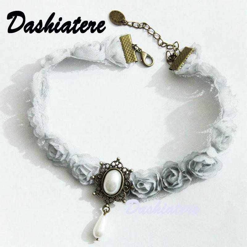 チョーカー パール レディース ネックレス アクセサリー シンプル レトロ レース カラー ネック バンド グレー