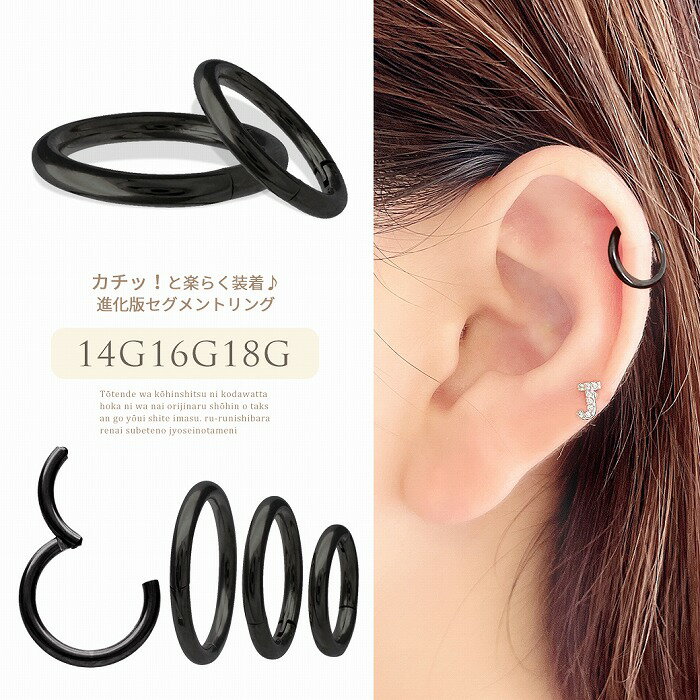 ボディピアス 軟骨ピアス [14G 16G ]COOLブラック!進化版セグメントリング ★ヒンジ付だから、キャッチ はもう失くさない!★サージカルステンレス316L ワンタッチ式 1045 ボディーピアス