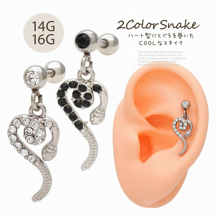 ボディピアス 軟骨ピアス [16G 14G ]ハート 型にとぐろを巻いたCOOLなデザイン スネイク 蛇 heart チャーム ヘリックス 1105 ボディーピアス