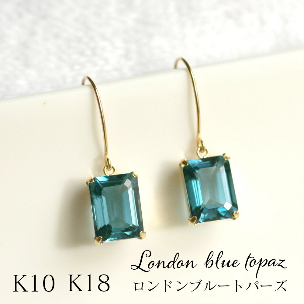 【10/30~11/3迄クーポン有】K10 またはK18 イエローゴールド ロンドンブルートパーズ ピアス国内 天然石 パワーストーン K18YG 18K 10K K10YG 10金 金属アレルギー対応 ジュエリー カラーストーン 色石 overseasDelivery ブルー 水色 11月 誕生石