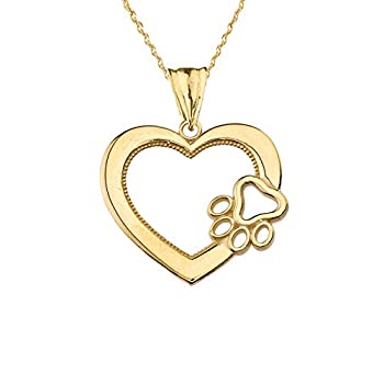 【中古】【輸入品・未使用】Dazzling 14?Kイエローゴールドオープンハート犬足プリントチャームペンダントネックレス