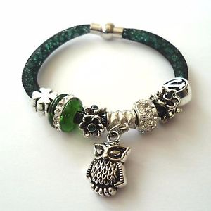 【送料無料】イタリアン ブレスレット カフネットワークペンダントフクロウbracciale donna charms c argento con rete verde e ciondolo gufo cristalli 41 h