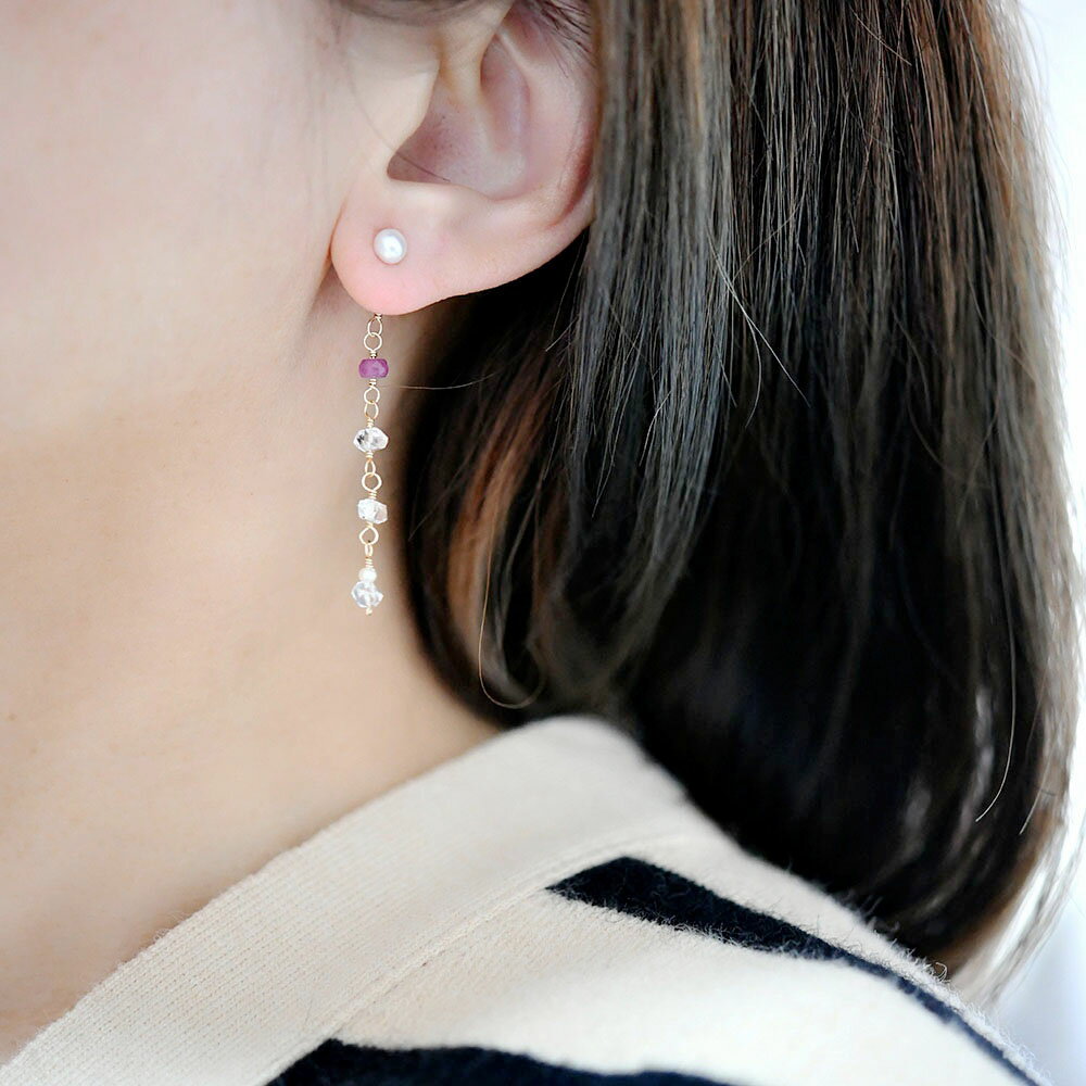 夢を実現させる力 ドリーム・クリスタル オリジナル 極上 3WAYハーキマーダイヤモンドとピンクサファイア パールのバックキャッチピアス 4月の誕生石 RALULU.SHUハンドメイド 14kgf 水晶 10月の誕生石 ハンドメイド
