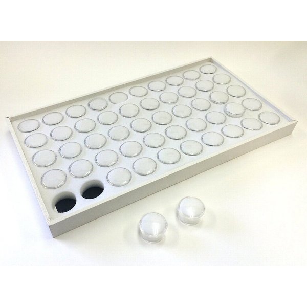 ◆ルース(石)の他、リングやピアスなどの小さなジュエリーも収納できます。◆ケースサイズ径:28.5mm◆ケース数:50個◆トレーサイズ:37.2×20.9×2.6cm(WLH) 紙製 直径28.5mmのケースが50個付いたルースケース(トレー付き) ルース(石)やラインストーンなどの細かなものからリングやピアスといったジュエリーの収納にも大変便利です。 LINE友だち登録はコチラから>>