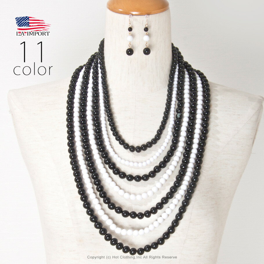 7連 カラー ビーズ ロング ネックレス&ピアスセット レディース LAインポート【ネコポス可】[]