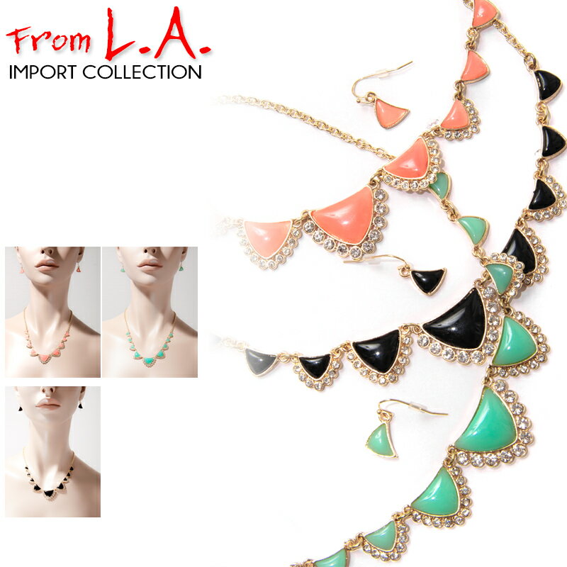 トライアングル ビジュー プレート ネックレス&ピアスセット LAインポート レディース 【ネコポス可】[]