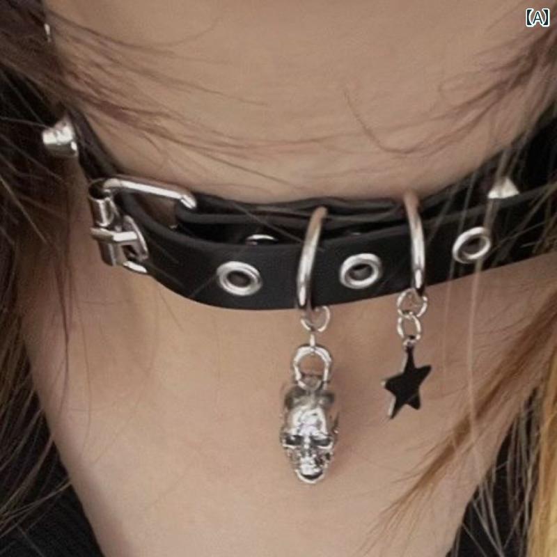 Y2K チョーカー ネックレス レディース ダーク パンク Y2K サブカルチャー ホット ガール 五芒星 スカルネックレス チョーカー ネックレス 首輪 カップル ハロウィン