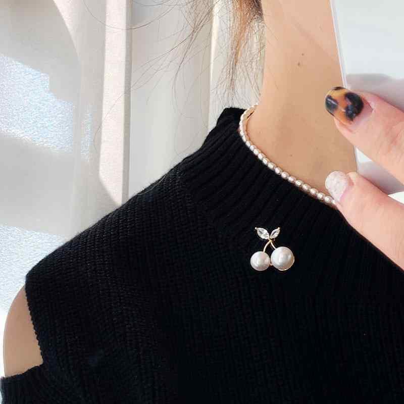 チェリー かわいい ネック ライン 装飾 淡水 パールブローチ 露出 防止 隠し ボタン 2024