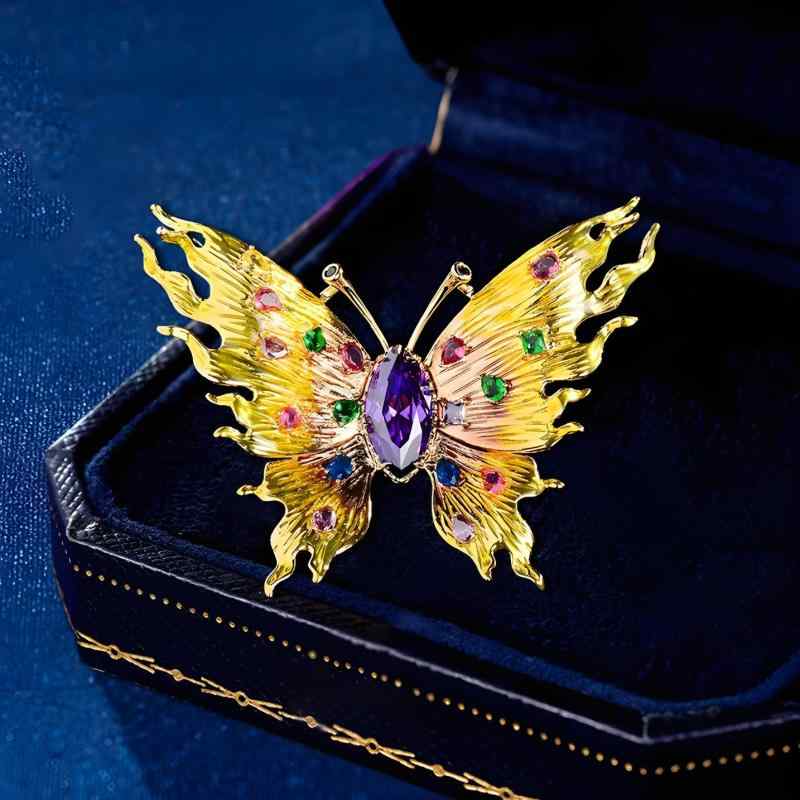 ブローチ レディース きらめく ジルコニア 高級感 エレガント クリスタル バタフライ 蝶 ユニークデザイン スーツ ジャケット アクセサリー