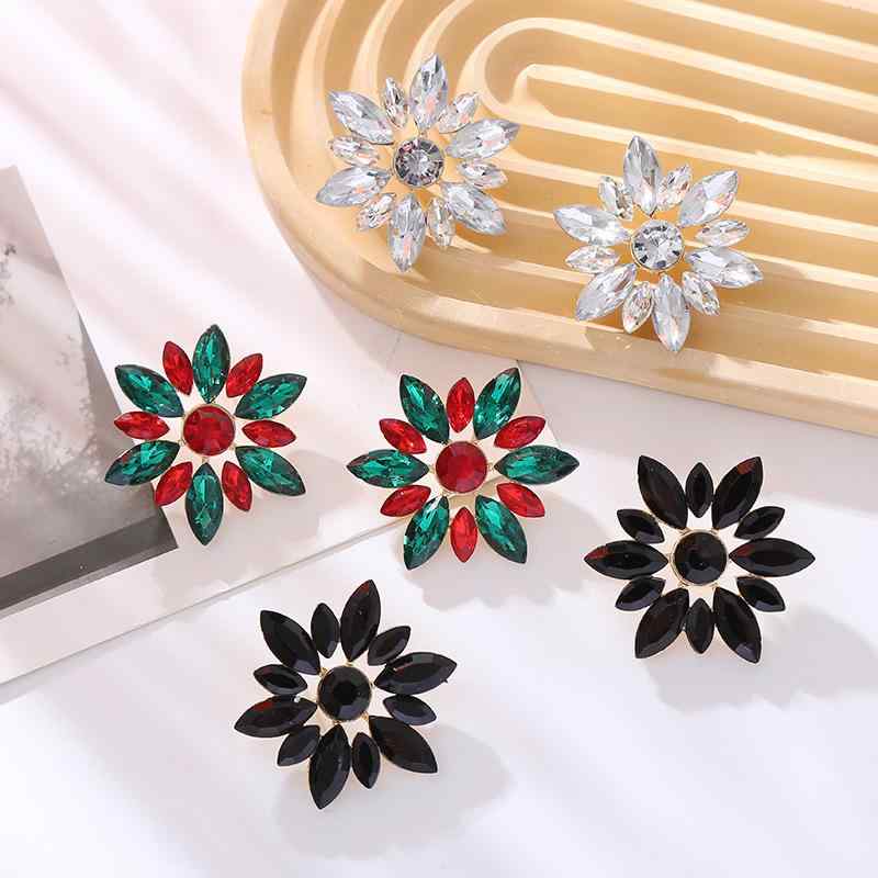 ・カテゴリ: ピアス・イヤリング・主な素材: ガラスラインストーン・モチーフ: 花柄・加工: ラインストーン装飾・スタイル: シンプル、通勤スタイル・対象: レディース・カラー展開: ブラック、ホワイト、マルチカラー