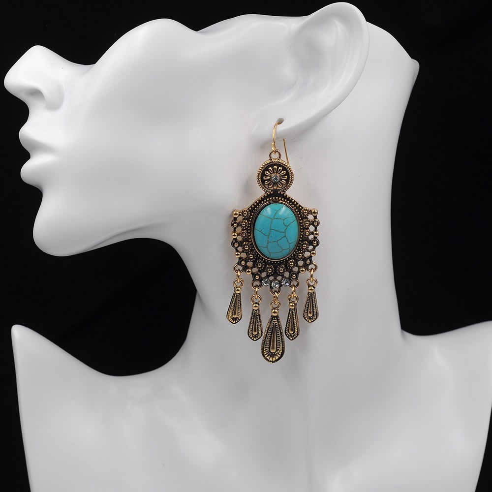 ハリスターコイズステンレスピアス/1個販売 サージカルステンレス316L トルコ石 インディアンジュエリー メンズ レディース ステンレスピアス 揺れる フックピアス アメリカンピアス 天然石 チャーム ボヘミアン 20G 20ゲージ アンティーク 大きい クリスタル 女性 男性 人気