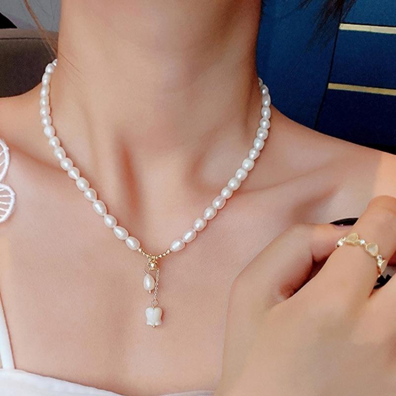 ネックレス レディース スズラン 花柄 パール ビーズ チェーン ペンダント チョーカー 電気メッキ加工 ラッキーアイテム