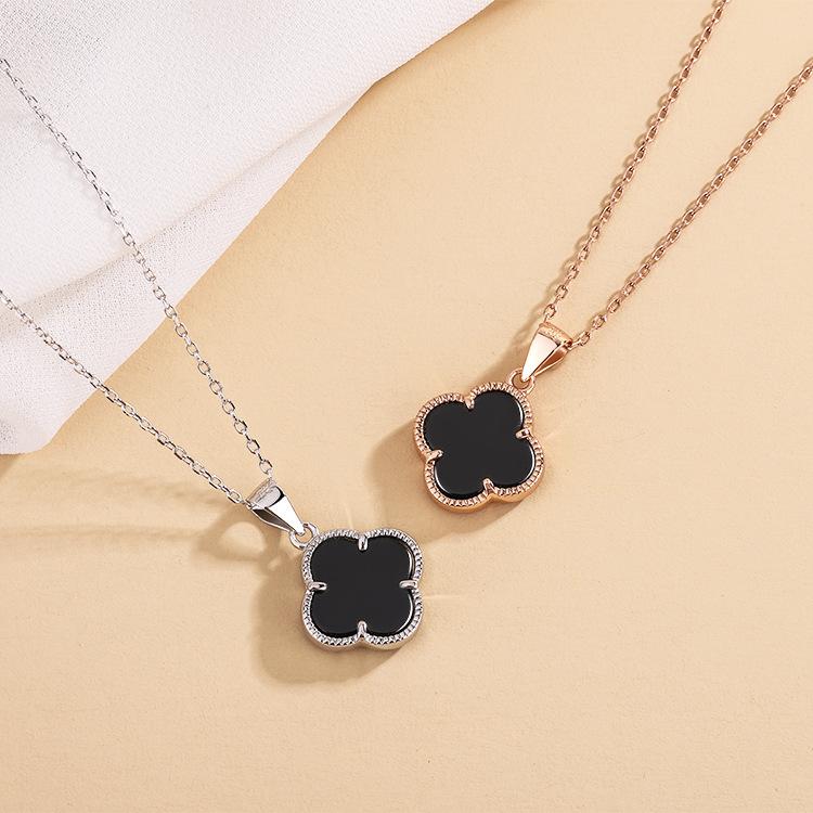 ネックレス レディース シルバー999 黒瑪瑙 四つ葉 クローバー ペンダント 花柄 小さめ 高見え チョーカー