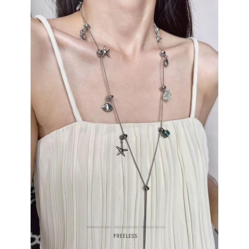 ネックレス レディース チタン鋼 ペンダント 海星 貝殻 タッセル シルバー 電気メッキ加工 高級感 個性的 トレンド アクセサリー