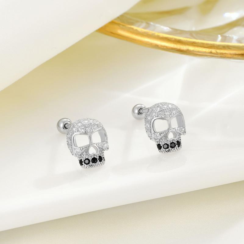 ピアス 男女兼用 スカル ドクロ ジルコニア シルバー925 U形 個性的 ヒップホップ ストリート