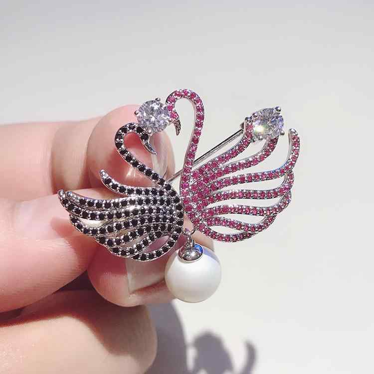 ブローチ レディース 韓国スタイル 白鳥 スワン パール パール カラフル クリスタル ジルコニア 個性的 上品 エレガント コート カーディガン ショール ストールピン アクセサリー
