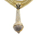 US買い付け NO BRAND の金メッキネックレスになります。 ファッションの変化とともにアクセサリーのトレンドも変化していく中、今シーズン間違いナシの1品が入荷しました☆ラップやMCバトルなど、ヒップホップを象徴するモチーフとして、これまでにも多くリリースされてきた定番・王道のマイクロフォン☆びっちりとジルコニアが敷き詰められ、HIP HOP流儀のBLING BLINGなデザインがGOOD!!! 光の当たる角度により、キラキラと常に見た目の変化があるのがポイント☆チェーンのみの単品使いでも充分な存在感の、フランクリンチェーン(フォックステール)とのセット☆ヘッドとチェーンは取り外し、別々に使用できるため、お好みのアレンジも◎ ※メッキ物のため金属アレルギーのある方はお控えください。 ■素材 合金(金メッキ) ■カラー GOLD ■ヘッド 横 2.5 縦 7.8 サイズ チェーン部分 全長 76.0cm 横幅 0.4cm INFOMATION ■問い合わせ先・榊(さかき)まで slyder@sunny.ocn.ne.jp 04-7162-0132 ■US買付期間中は約1週間、発送が行えません。 ※定休日のご確認をお願いします。