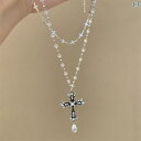 ネックレス レディース 十字架 クロス ペンダント チョーカー ダブル レイヤード 二連 ゴシック ダーク 甘辛 個性的 ユニーク 上品 普段使い カジュアル 万能