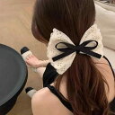ヘアクリップ レディース 女性用 韓国ファッション フレンチスタイル エレガント 上品 ビッグリボン 蝶々結び レース 髪飾り バレッタ ハンドメイド 布製 フェミニン スイート かわいい 後頭部 春夏