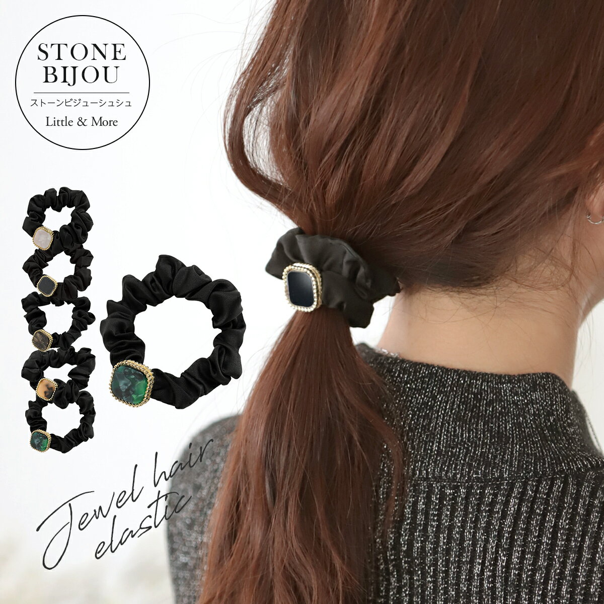 【クーポンで最大50%OFF】宝石調ヘアゴム 大人っぽい ヘアアクセサリー おしゃれ 大人用 痛くない 髪ゴム 上品 オフィス 結婚式用 レディース 黒色 ブラック シュシュ サテン