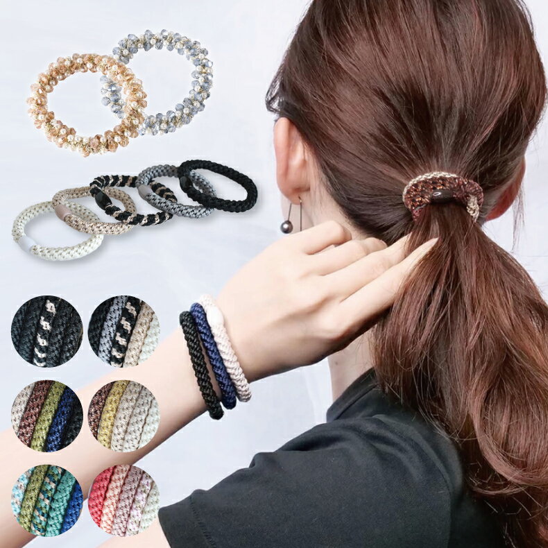 ヘアゴム 大人っぽい 5色セット ヘアアクセサリー ロープ風 パールヘアゴム2色セット 大人 跡がつかない 痛くない 髪ゴム 簡単 ポニーテール 上品 オフィス 結婚式 レディース シンプル 強い 中学生 高校生 子供用 韓国