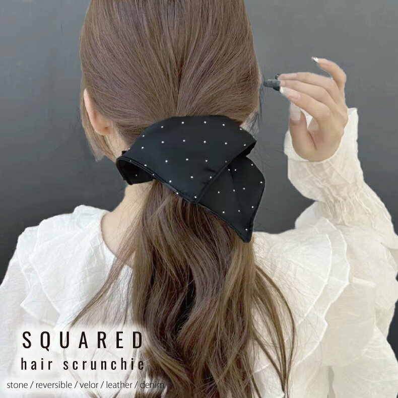 【20%OFFクーポンで】シュシュ スクエア 雑誌掲載 韓国 ビジューヘアゴム 大人っぽい ベロア クラシック クラシカル 上品 光沢 ヘアシュシュ ボリューム シンプル 大人カジュアルヘアアレンジ エレガント ボリューム まとめ髪 フォーマル 発表会 結婚式 デート