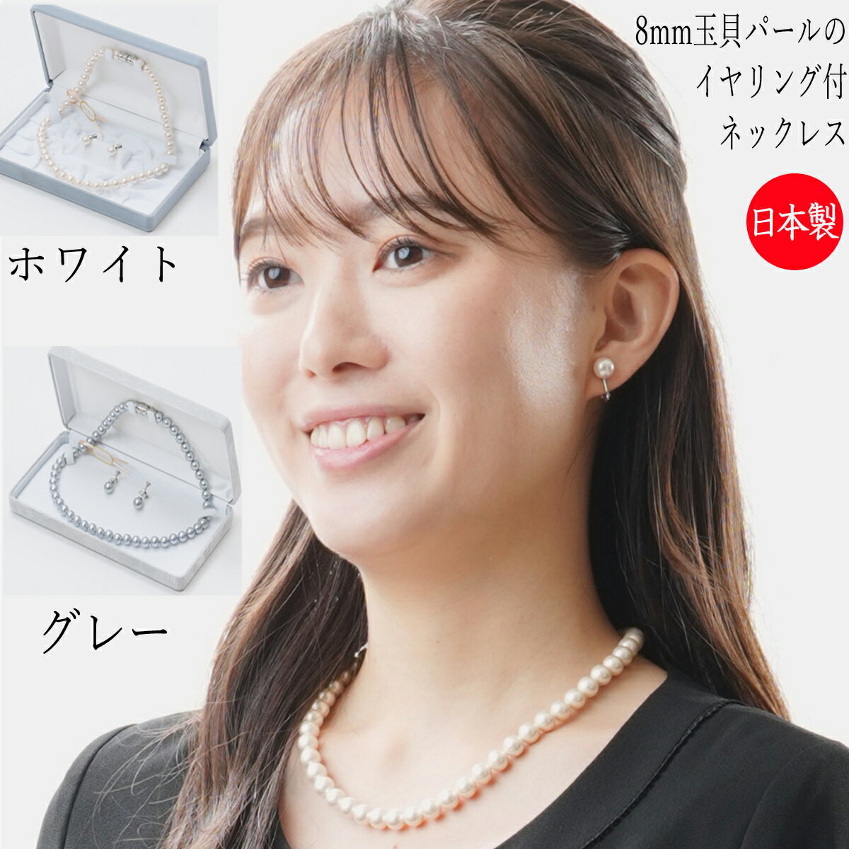 フォーマル用 一連 貝パール イヤリング シリコンパット付ネックレス GZ208(ホワイト) GZ210(グレー)※ケース付き【日本製】IWASA いわさ 岩佐 レディース 婦人用 冠婚葬祭 葬儀 葬式 結婚式 卒業式 入学式 卒園式 入園式 パーティー 1899W1899GR