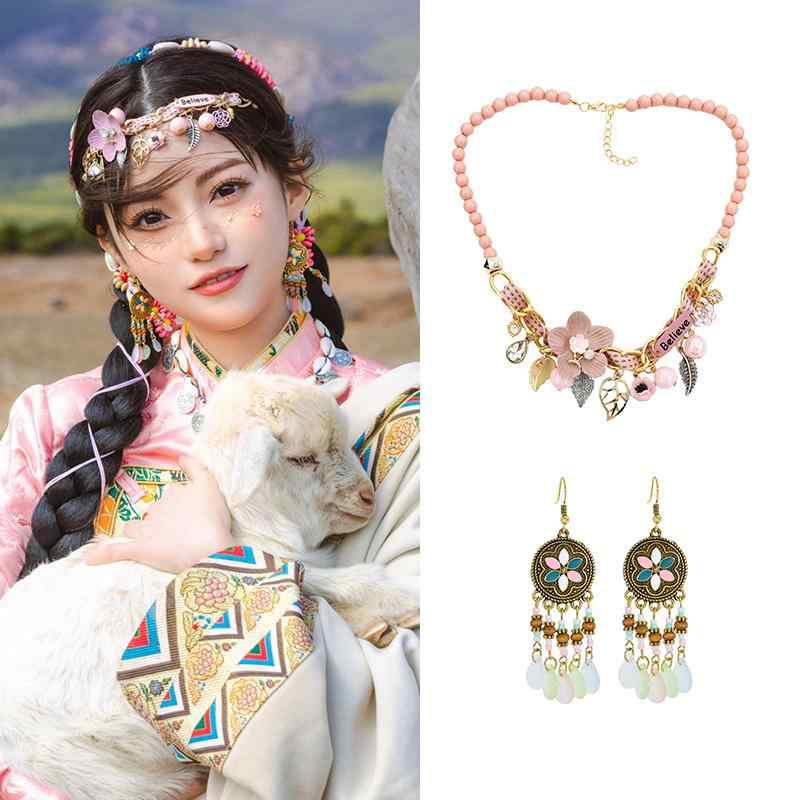 ヘッド ドレス レディース アクセサリー 雑貨 エスニック レトロ パール ドレス 額チェーン 頭飾り スーパー フェアリー カラー ボヘミアン タッセル イヤーフック ピアス