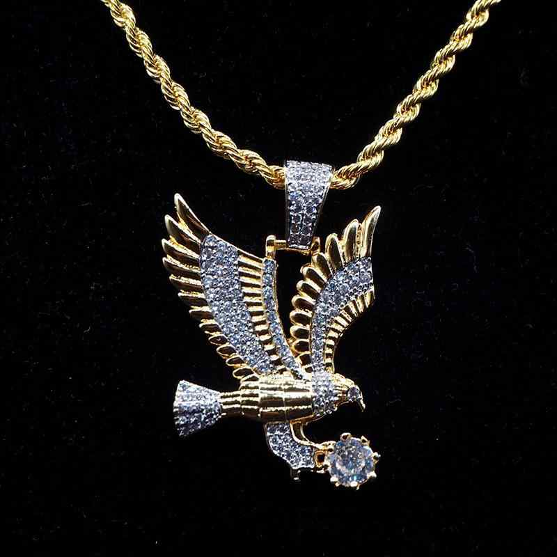 2ネックレス 男性用 ジルコニア イーグル ペンダント 接触冷感 普段使い ヒップホップ ラッキーアイテム 電気メッキ加工 羽 金色