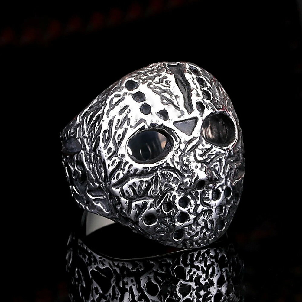 【クーポン利用で4430円】 指輪 リング 黒 ブラック ステンレス メンズ 最新 フライデイ キラー ジェーソン マスク スチール パンク ヒップ ホップ バイカー ジュエリー 創造性 ギフト