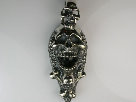 裏側のクモの巣を規律などに縛られたモノに例え、 表側の髑髏の部分でもがきながらも反抗している様をイメージし造形しました。 口の中から見えるクモの巣は自分の言動には常に責任が宿っている事を 私からのメッセージとして捉えてもらいたいものです。チェーンとのセット組み合わせで、チェーンが20%OFF になります! ※ご注文後の製作で、お届けまで約2週間前後かかりますことをご了承下さい。 受注生産のためキャンセルはできません。 素材 Silver925 大きさ <縦>51mm (バチカン含む)<横>19mm <重さ>26g 付属品 専用ポーチ 品番 P-S-08 備考 チェーン別売り ブランド <銀燭> 日本製/ハンドメイド ※こちらは、ご注文後の製作になります。製作に約2週間必要です。