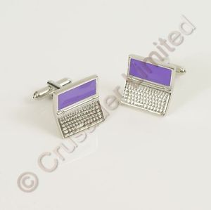 ラップトップ パソコン 【 銀 紫色 】 カフスボタン 【 パープル 男女 カフリングス スーツ 人気 プレゼント ギフト ユニーク 趣味 カフス専門店 】