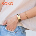 【CLASSY STORY GISELe Oggi LEE VERY 雑誌掲載】【再入荷】≪SOKO≫ ソコ ワイド ハンマード 幅広 ゴールド バングル 24金仕上げ ゴールドコーティング Bahari Statement Cuff (Gold) レディース
