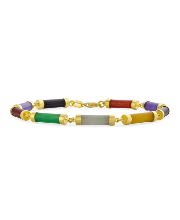 ブリング レディース アクセサリー ブレスレット・バングル・アンクレット Bling Jewelry Asian Style Fine Jewelry Tube Bar Link Strand Greenatural Jade Bracelet Gold Plated Sterling Multicolor マルチカラー