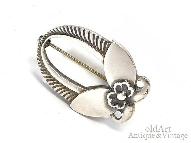 北欧 デンマーク製 ヴィンテージ Georg Jensen ジョージジェンセン 植物 花 透かし細工 ピン ブローチ #227 【M-14686】【中古】【送料無料】